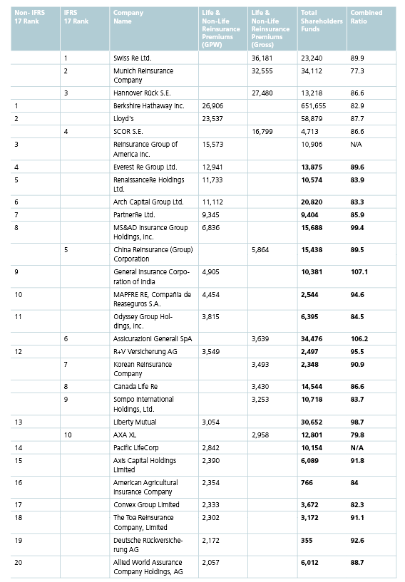 AM Best hat die weltweiten Branchengrößen erstmals in zwei Ranglisten getrennt aufgeführt: Unternehmen, die nach IFRS 17 berichten, werden anhand ihrer Bruttoerträge geführt. Rückversicherer ohne IFRS-17-Abschluss werden weiterhin nach ihrem Prämienvolumen bewertet.